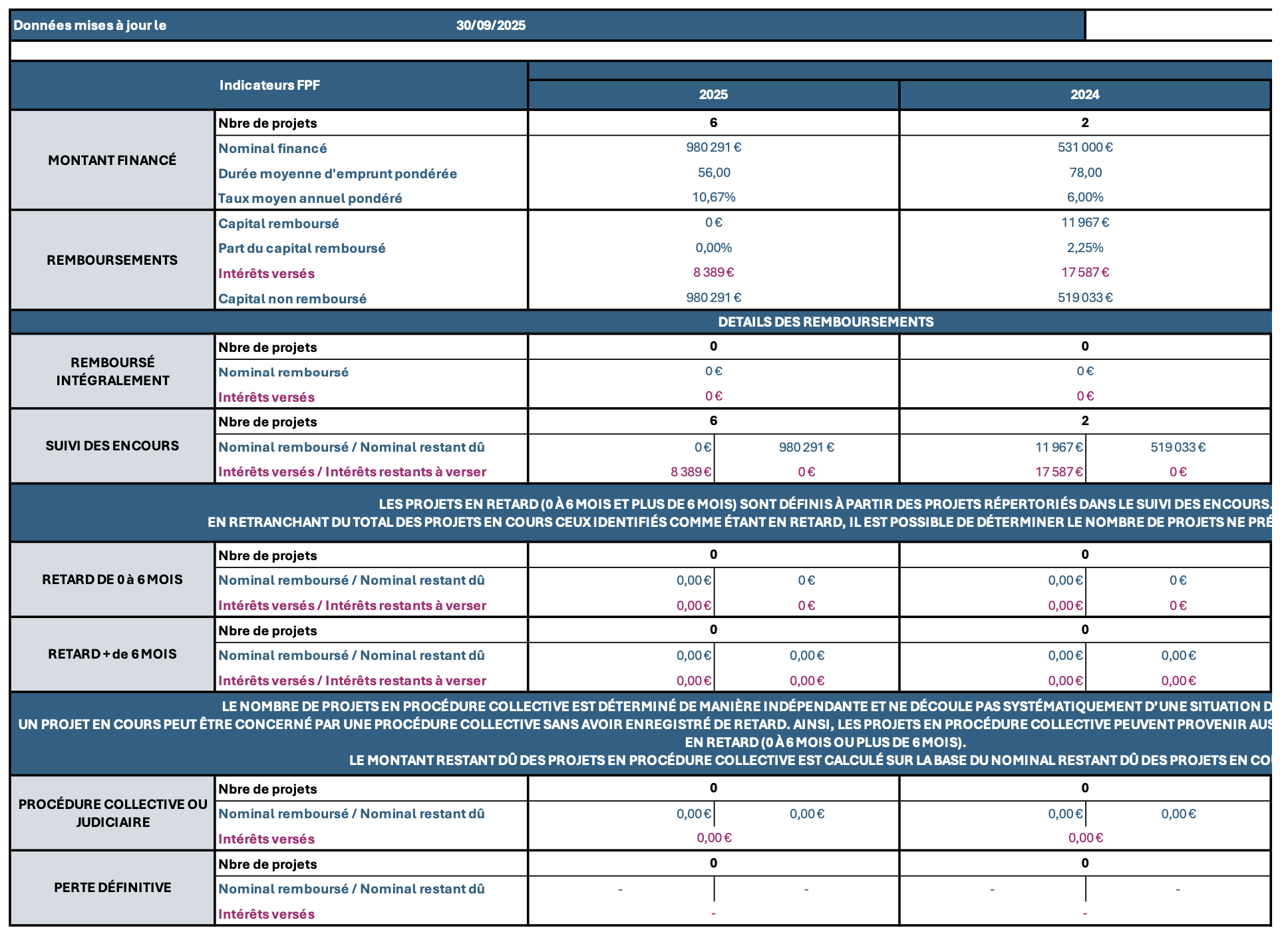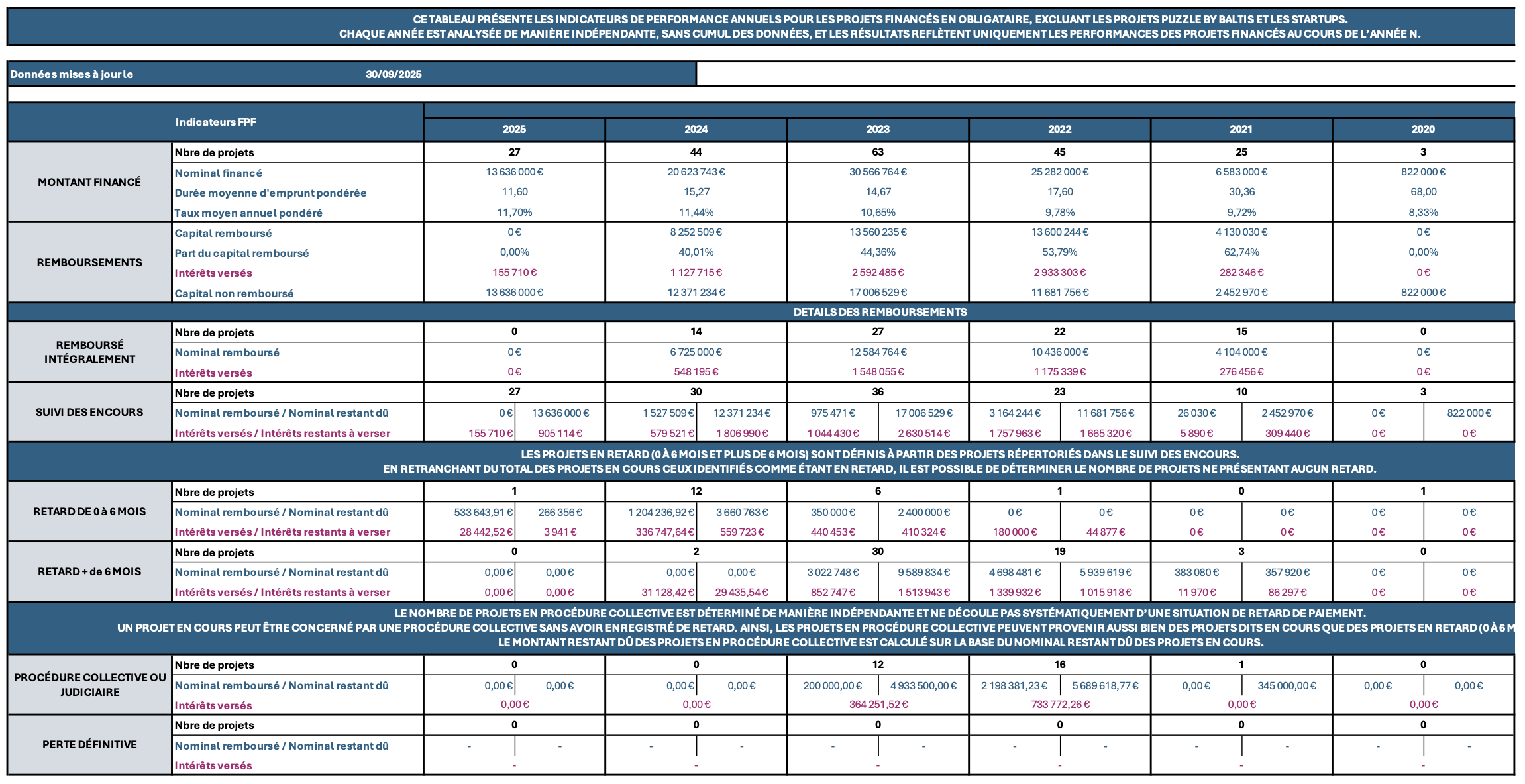 Les indicateurs de performances de la plateforme d'investissement Baltis